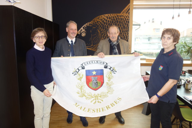 Foto: Claudia Glomann v.l.n.r.:Petra Hnevkovsky (Rektorin Grund- und Mittelschule Bruck i. d. Opf., Georg Hofmann (1. Bürgermeister Gemeinde Bodenwöhr),Hans Frankl (1. Bürgermeister Markt Bruck i.d. Opf.),Renate Wittmann (1. Vorsitzende Städtepartnerschaft Bruck-Malesherbes)